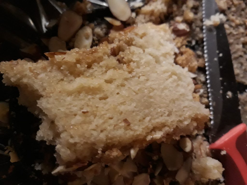 - While baking, make the topping by stirring together the almonds and brown sugar.